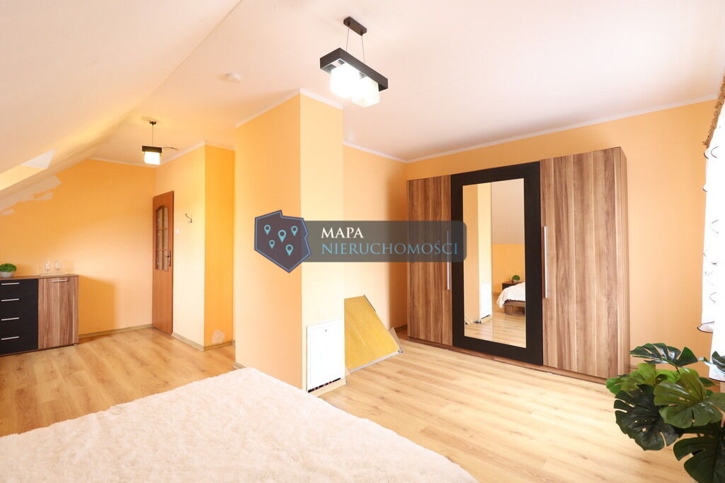Pierwsza z sypialni to duża przestronna brzoskwiniowa sala